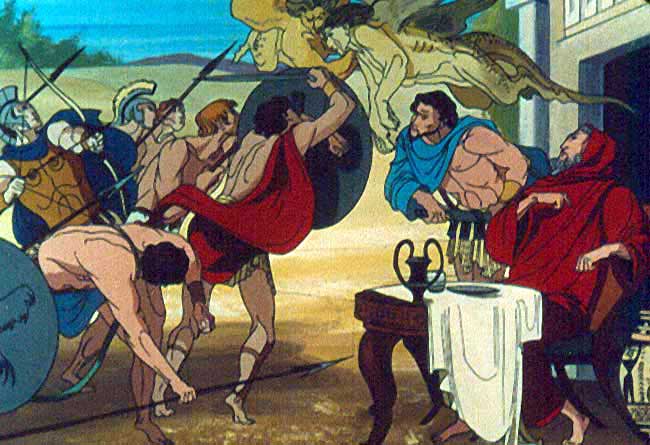 | Anterior | Inicio | Seguinte "... Logo duns días de navegación chegamos ás praias das Estrófadas, onde desembarcamos. Alí habitan a cruel Celeno e as outras Arpías, despois de seren expulsadas da mesa e palacio de Fineo, a quen arrebataban a comida a cotío. Ó vernos Celeno profetizounos que "non cercaríamos de murallas a terra prometida sen que a fame nos obrigara a devorar as nosas propias mesas". Axiña decidimos fuxir de alí atemorizados ..." |