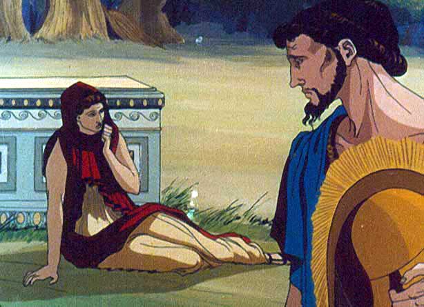 | Anterior | Inicio | Seguinte " ... Continuamos a nosa viaxe costeando o Epiro ata chegar á cidade de Butroto. Alí enterámonos de que Heleno, fillo de Príamo, reinaba en Grecia e ocupaba o solio de Pirro, e que casara coa viuva de Héctor Andrómaca. Por casualidade estaba esta ofrecendo dones fúnebres ó seu primer esposo nun bosque sagrado cando, ó verme chegar, caeu desmaiada pensando que era unha pantasma. Cando volveu en sí relatoume todas as súas desgracias ..." |