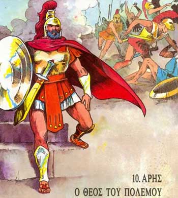 Deus da guerra e do valor. Leva casco e armas. Amante de Afrodita/Venus