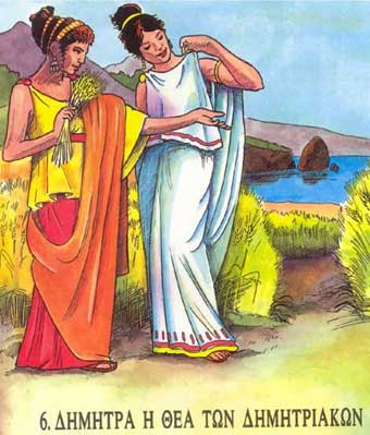 Deusa da agricultura e dos froitos da terra. Os seus atributos son as espigas e a fouce. Pode levar tamén un golfiño e unha pomba.