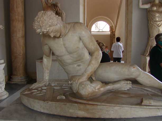 | Inicio | Seguinte O realismo desta copia romana dun orixinal grego do século III a.C. provoca a compaixón do espectador. Coñecida tamén polo nome de Gálata moribundo, podemos vela no Museo Capitolino situado no Palazzo Nuovo. |