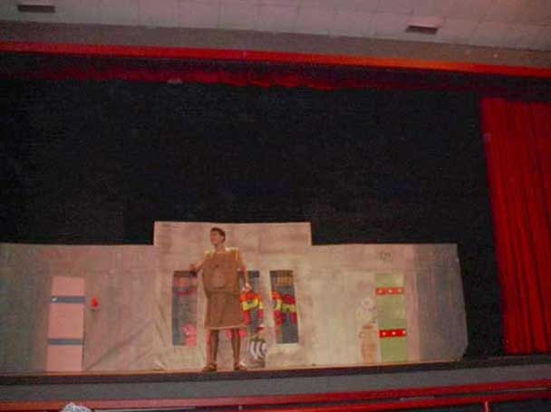 | Inicio | Siguiente O grupo "Sardiña", formado por alumnos do IES "A Sardiñeira" e "Elviña" da Coruña, constituíuse en 1983 e está especializado no texto plautino. Ten xa perto de 400 representacións no seu haber. Puidémolos ver o ano pasado no festival de Lugo e volveremos a velos este curso. |