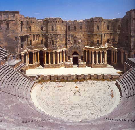 Bosra, capital da provincia de Arabia, contou cun teatro dende principios do século II d.C. Podemos observar con claridade a