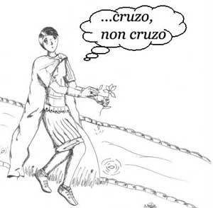 A ver que fas, coñeces o río Rubicón? Non me digas que non, que te coñezo. Pois logo dígocho eu: o Rubicón é un río que se atopa en Italia, máis concretamente no nordeste da Península Itálica. Ben, pois agora que xa sabedes do río, ímosvos contar unha historia que pasou en Roma hai unha pila de anos, e que lle aconteceu a César.