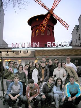 Ese día chegamos a París; atravesamos a cidade facendo unha visita panorámica que nos deixou coa boca aberta, menos mal que no bus non había moscas! Chegamos ao hotel, instalámonos nas habitacións, pequenas pero acolledoras. Como non era tarde fomos ata Pigalle onde vimos o Moulin Rouge e toda a rúa X he he... e subimos ao barrio dos pintores, Montmartre, e ao Sacré-Coeur (aínda andará alí a camiseta que perdeu Óscar).