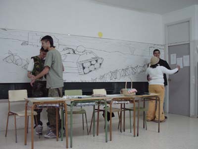 SR. TEPÁN.-Pues entonces podemos hacer una cosa: Parar la guerra. ZEPO.- ¿Cómo? SR. TEPÁN.-Pues muy sencillo. Tú le dices a todos los soldados de nuestro ejército que los soldados enemigos no quieren hacer la guerra, y usted le dice lo mismo a sus amigos. Y cada uno se vuelve a su casa. ZAPO. ¡Formidable! SRA. TEPÁN.-Y así podrá usted terminar de arreglar la plancha eléctrica. ZAPO.- ¿Cómo no se nos habrá ocurrido antes una idea tan buena para terminar con este lío de la guerra? SRA. TEPÁN.-Estas ideas sólo las puede tener tu padre. No olvides que es universitario y filatélico. [...] SRA. TEPÁN.- ¿Qué os parece si para celebrarlo bailamos el pasodoble de antes? [...] (Pone el disco. Suena un pasodoble. Bailan, llenos de alegría, ZAPO con ZEPO y la SRA. TEPÁN con su marido. Suena el teléfono de campaña. Ninguno de los cuatro lo oye. Siguen, muy animados, bailando. El teléfono suena otra vez. Continúa el baile. Comienza de nuevo la batalla con gran ruido de bombazos, tiros y ametralladoras. Ellos no se dan cuenta de nada y continúan bailando alegremente. Una ráfaga de ametralladora los siega a los cuatro. Caen al suelo, muertos. Sin duda, una bala ha rozado el gramófono: el disco repite y repite, sin salir del mismo surco. Se oye durante un rato el disco rayado, que continuará hasta el final de la obra. Entran, por la izquierda, los dos camilleros. Llevan la camilla vacía. Inmediatamente, cae el TELÓN |