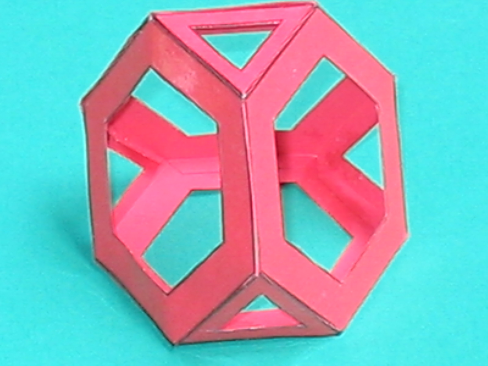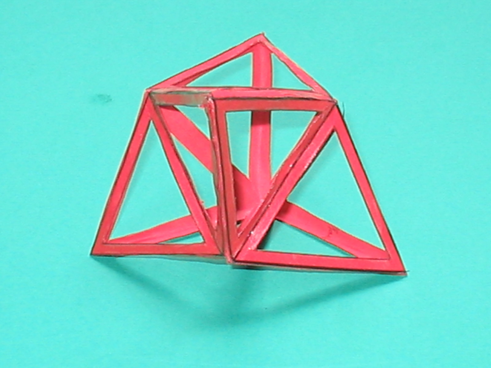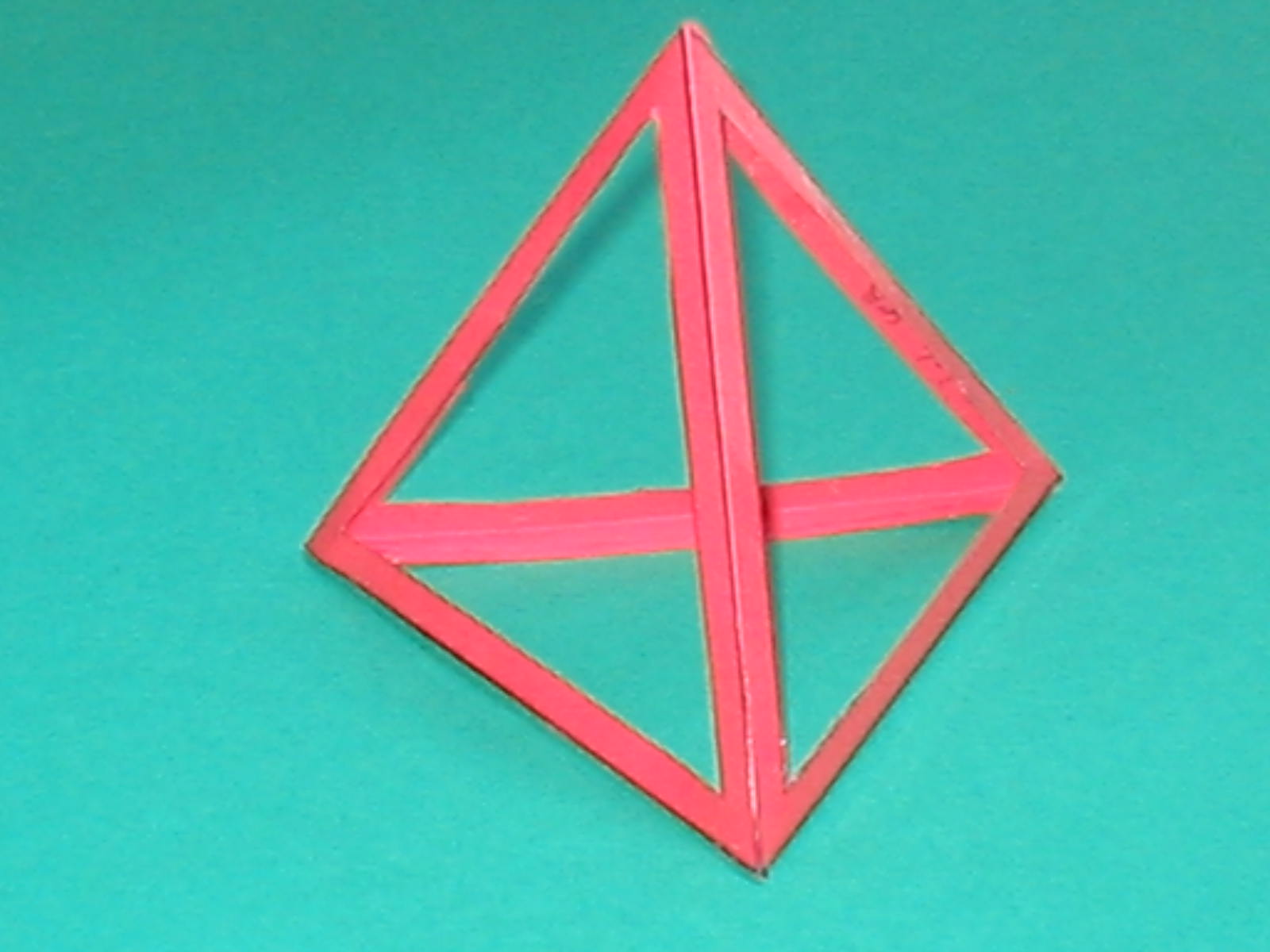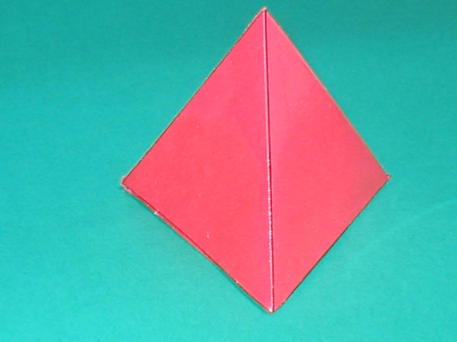 O tetraedro plano, sólido ou oco está formado por seis liñas iguais que conteñen doce ángulos superficiais e catro sólidos e forman entre si catro bases triangulares equiláteras e equiángulas. Deste corpo non pode de ningunha forma darse o elevado absciso, por falta de hexágonos que formen ángulos sólidos. |
