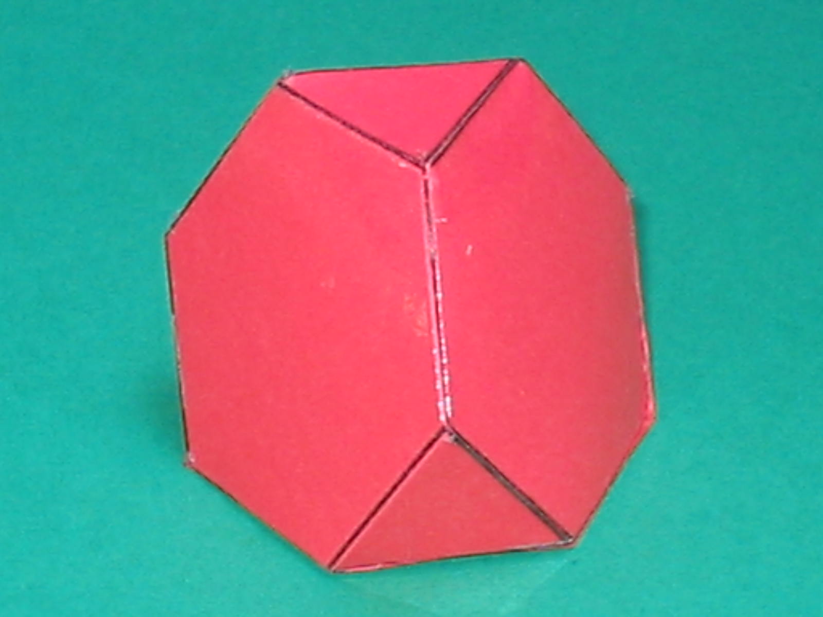 | O tetraedro despuntado ou absciso sólido plano ou oco está contido por dezaoito liñas que forman trinta e seis ángulos superficiais e doce sólidos; polo tanto, circúndano oito bases, catro das cales son hexagonais, é dicir, de seis lados iguais, e catro triangulares, é dicir, de tres lados, igualmente equiláteras e equiángulas. Pero, destas dezaoito liñas, doce son comúns ás bases triangulares e hexagonais; e estas son todas propias dos hexágonos, porque necesariamente os catro hexágonos xuntos forman con algúns dos seus lados os catro triángulos, como a experiencia da súa propia forma material nos amosa, de maneira evidente. E deriva do precedente mediante o corte uniforme dos seus lados en tres partes iguais.