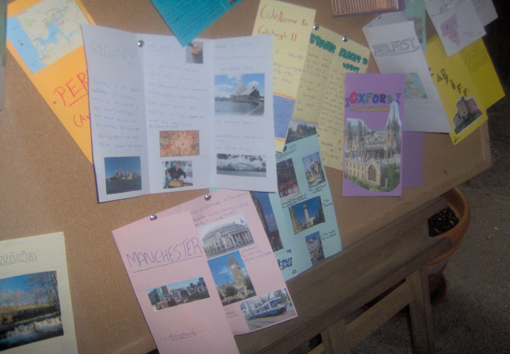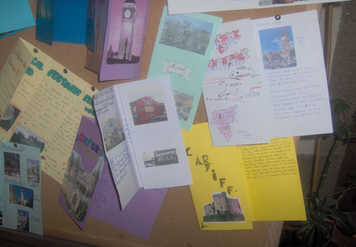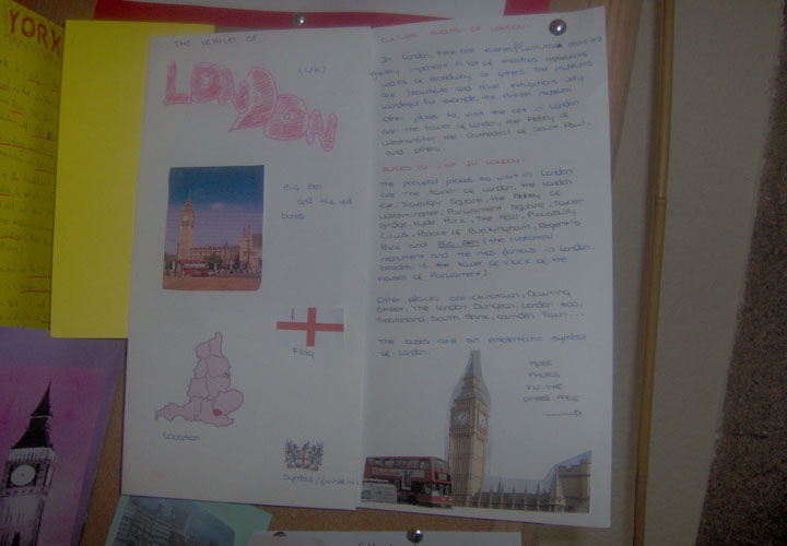 Follow these steps: a) Choose an English-speaking city (go to www.wikipedia.org for further information) b) Look for pictures in the web (go to google images) and print them c) Divide a coloured DIN A-4 in three parts, bending it as if it were a real leaflet. d) STRUCTURE, Write a brief text with the following PARTS : 1. Front-cover: Picture of the city and name in capital letters 2. Inside: (see students book, page 82) 2.1. Location and number of inhabitants 2.2. Weather 2.3. Typical food 2.4. Cultural events 2.5. Places to visit e) Now you're ready to prepare your leaflet. See model here