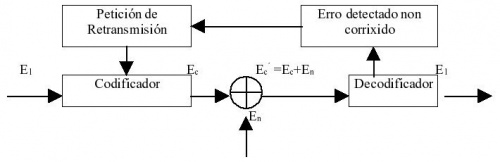 E1 é a mensaxe inicial e Ec a mensaxe inicial codificada. A causa do ruído na liña aparece: E´c = Ec+ En. Ao chegar E´c ao decodificador poden ocorrer dúas cousas: