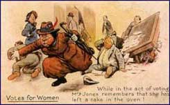 O caso británico é o mellor exemplo de mobilización anti-sufraxista, non só entre os homes senón tamén entre as mulleres. En novembro de 1908, fundouse en Londres a Liga Nacional de Mulleres Anti-Sufraxio (Women's National Anti-Suffrage League). A súa primeira presidenta foi a popular novelista, Mary Ward. Os líderes da Liga Anti-Sufraxio insistían en que a gran maioría das mulleres británicas non estaban interesadas en conseguir o dereito de voto e advertían contra o perigo de que un pequeno grupo de mulleres organizadas forzaran ao goberno a cambiar o sistema electoral. Porén, a realidade económica e política da Primeira Guerra Mundial e do seu conseguinte posguerra, obrigou a que a sociedade incorporara ao escenario público a nais e esposas. O seu concurso foi decisivo no esforzo económico durante a guerra. A consecución do dereito de voto foi un recoñecemento colectivo aos méritos acumulados. |