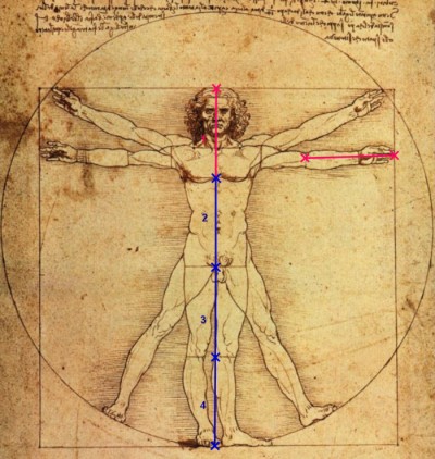 Las proporciones de Leonardo y Vitruvio, por tanto, no coinciden. Comprobamos la afirmación de Leonardo: