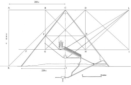 Trazar sobre el terreno la base de la pirámide La pirámide de Kheops es una pirámide de base cuadrada, lo que representó trazar un cuadrado de grandes dimensiones sobre el terreno. |