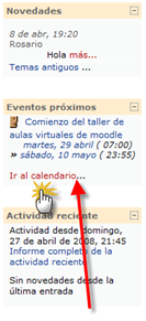 El calendario en los cursos de Moodle permiten ver de una forma rápida las actividades más próximas. Accedemos al calendario en la columna derecha de nuestro Aula Virtual: