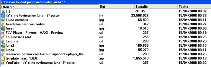 Paso 1c.- Para comenzar a organizar recursos renombramos los ficheros descargados. Como norma general conviene nombrar los ficheros con minúsculas y sin utilizar signos extraños (ñ, acentos, barras...etc.). Ello evita problemas con algunos servidores que (como los UNIX) distinguen entre mayúsculas, minúsculas y otros signos. Otros servidores no se comportan así y, a la larga, esto nos puede dar problemas en algunos servidores que no cargan algunos ficheros por el tipo de caracteres que a veces contienen sus nombres.