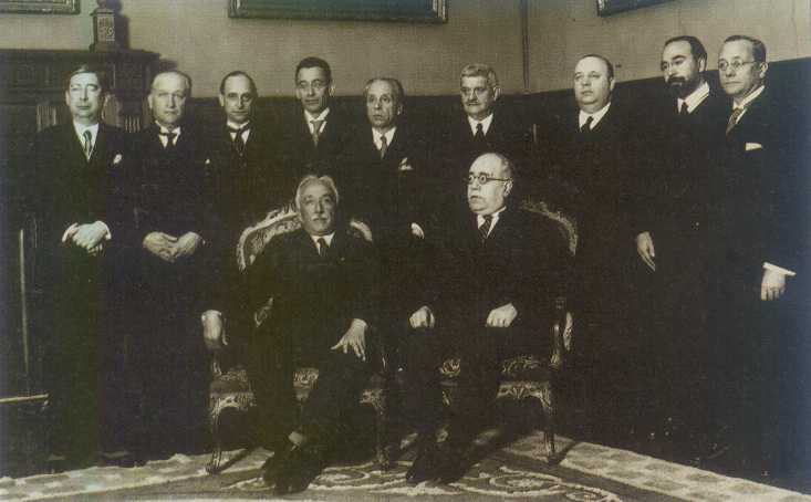 Goberno Azaña: sentados Niceto Alcalá Zamora (presidente) e Manuel Azaña.