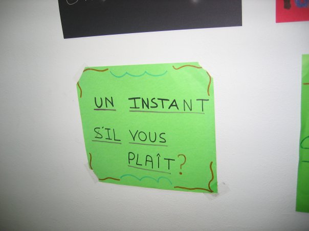 En los primeros cursos de la ESO, sobre todo en primero, donde el alumnado todavía no tiene ningún conocimiento de la lengua francesa y por lo tanto, no sabe expresarse en esta lengua, se pueden confeccionar carteles en los que aparezcan unas frases útiles que le puedan ayudar al principio, como por ejemplo, je ne comprends pas (no entiendo), vous pouvez répétez, s’il vous plaît (puede repetir, por favor), Un instant, s’il vous plaît…. (un momento por favor), comment on dit en français….(como se dice en francés…).