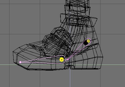 The mesh is the actual model geometry that is rendered. The mesh is deformed by the skeleton that is composed of the IKAs and Empties that define the deformation envelope. To simplify the animation process, the skeleton is often manipulated indirectly with a series of control objects.