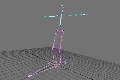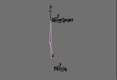 To solve this problem, we place an extra bone at the root of the main chain with the same facing, but rolled 90 degrees. This new IKA becomes the child of the main chain's root, and becomes the limb-parent to the main chain (Fig. 3).