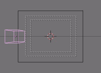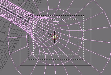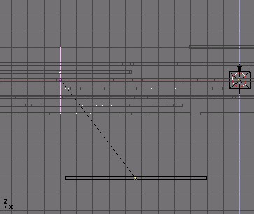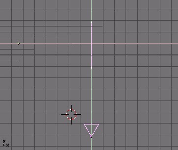 Now I edited the lattice in EditMode so that the right vertices have an increasing distance from each other. This will increase the stretch as the ship goes into the lattice. The right ends vertices I have scaled down so that they are nearly at one point; this will cause the vanishing of the ship at the end.