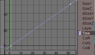 The TimeIpo is especially interesting for particle systems, allowing you to "freeze" the particles or to animate particles absorbed by an object instead of emitted. Other possibilities are to make a time lapse or slow motion animation.