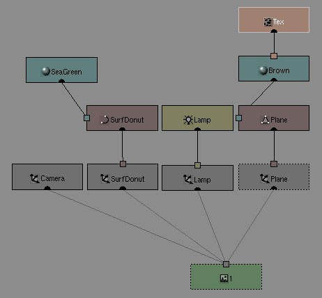 ObData; such as Mesh, Surface, Lamp. The Materials ("Brown" and