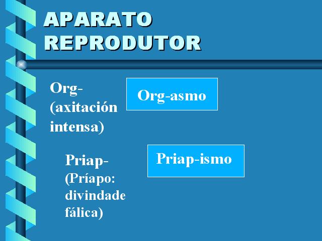 Priapismo.- Erección anormal do pene sen desexo sexual, ordinariamente, debida a unha afección inflamatoria ou a unha lesión da médula espiñal.