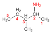 1. Grupo funcional: amina 2. Cadena principal: cinco carbonos (pentano) 3. Sustituyentes: metilo en 3 |