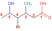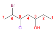 1. Cadena principal: más larga que contenga el grupo funcional (hexano)